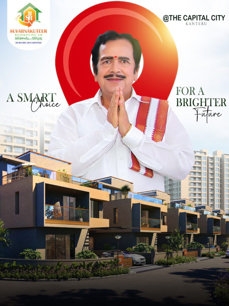 Capital City – Kanteru is a premium residential open plots project developed by Suvarna Kuteer Developers Pvt. Ltd., strategically located near the Capital Region of Amaravati, Guntur District. Designed for modern living and long-term investment, this project offers DTCP-approved plots, excellent road connectivity, and close proximity to major educational, healthcare, and government hubs.