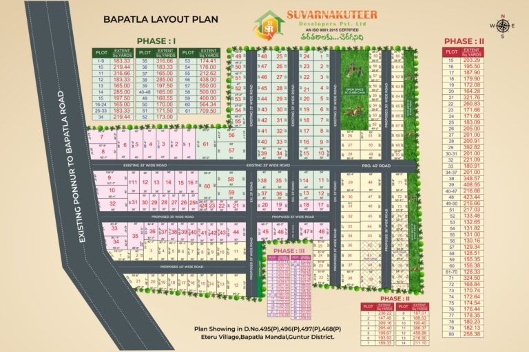 Sukhibhava – Bapatla is a well-planned residential layout by Suvarna Kuteer Developers Pvt. Ltd., offering DTCP-approved open plots with clear legal documentation and assured investment security. The project is designed to deliver long-term value in one of the rapidly developing areas of Bapatla District.