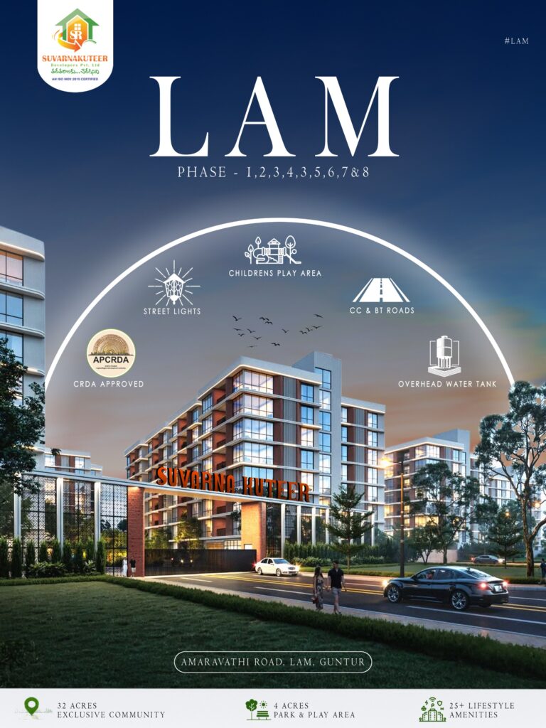 Suvarna Kuteer – Lam enjoys a strategic location in Lam Village, offering easy access to Guntur city, Tadikonda, and Amaravathi region. The project benefits from strong road connectivity and proximity to educational institutions, healthcare facilities, and daily conveniences, making it ideal for long-term residential settlement.